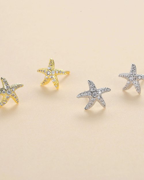 Product information: Treatment Process: Micro inlay Color: DSE0011 gold starfish stud earrings, DSE0011 platinum starfish stud earrings Applicable population: Female Material: Copper Popular elements: Starfish Packing list: Ear studs * 1 pair Product Image: