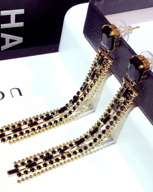 Product information: Type: ear studs Color: Black Style: Women’s Material: Alloy Size: 9 * 1CM Packing list: Earrings *1 pair Product Image: