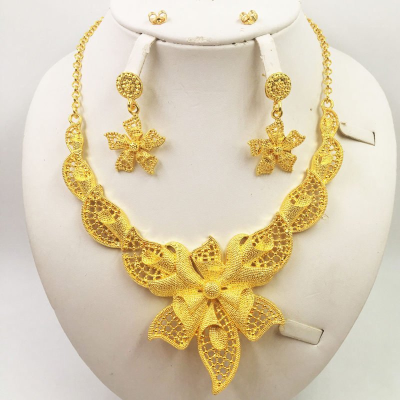 Gold Jewellery African Wedding Gifts Women Necklace Earrings